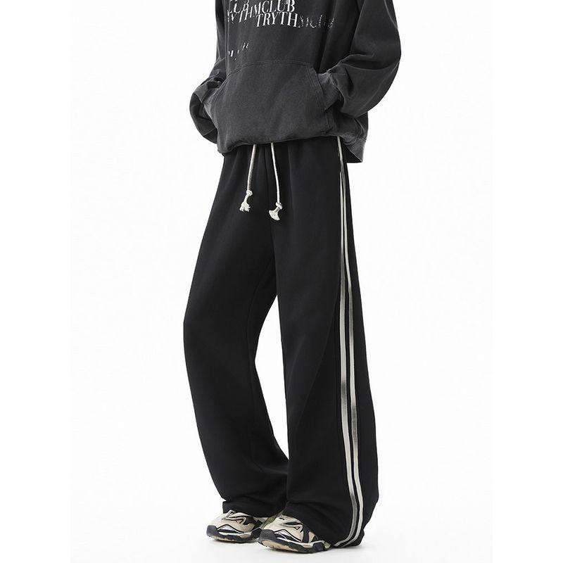 Wassup Trendy Striped Casual Pants for Men, Versatile and Trendy, Youth Vibe, Loose Straight-Leg Sports Sweatpants for Autumn