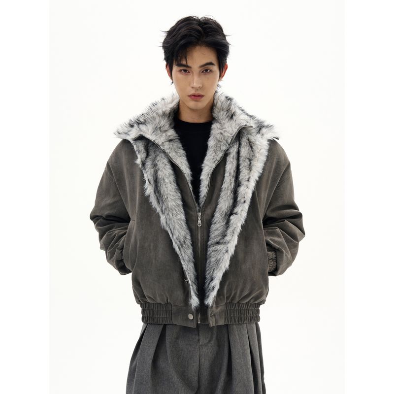 Kisko American-Style Trendy Brand Double-Layer Fur Collar Thickened Cotton Jacket for Men and Women, Winter Warm Cool Jacket for Couples
