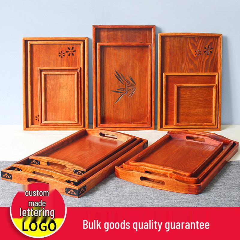 Handcrafted Japanese Orchid Rectangular Wooden Tea Tray with Custom Logo for Hotels and Restaurants