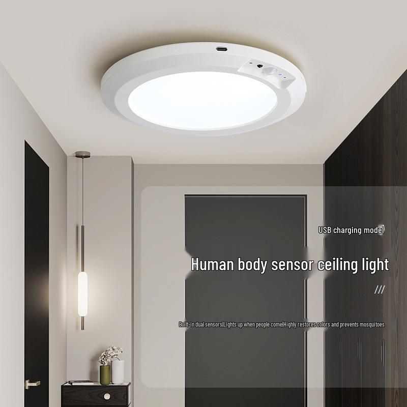 Wireless LED Ceiling Light with Motion Sensor & Remote, USB Rechargeable for Hallway, Cloakroom, or Balcony.
