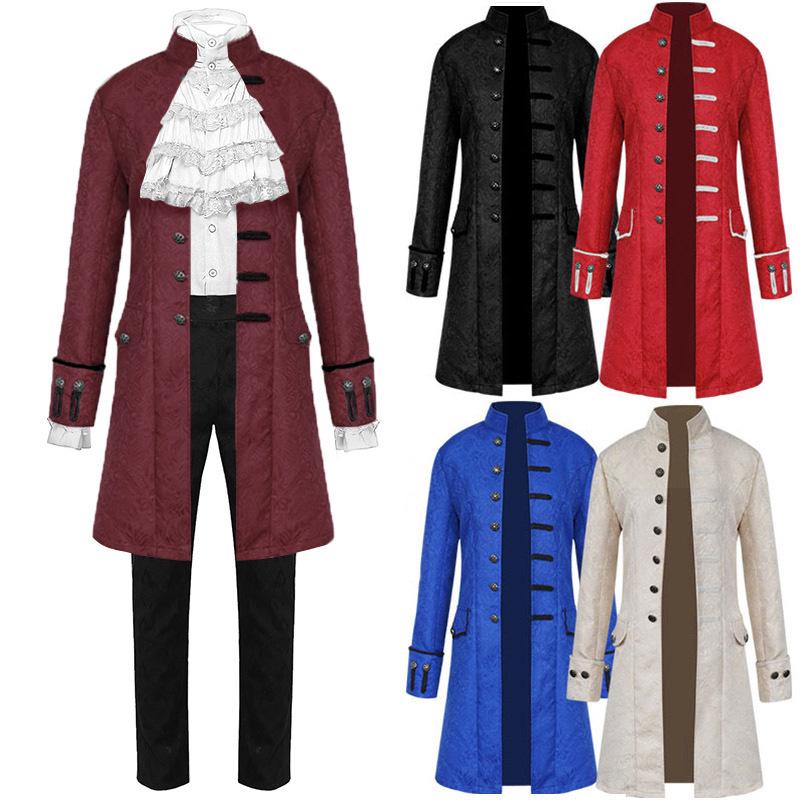 2025 Medieval Men's Solid Color Jacquard Coat - Christmas Performance Costume