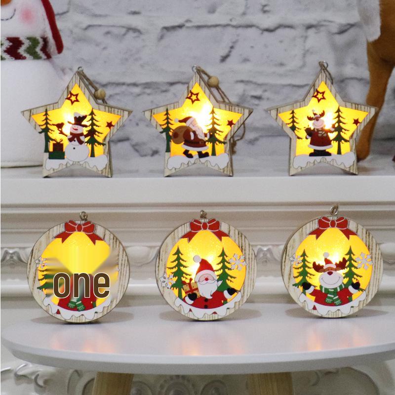 Wooden Luminous Christmas Ornaments: Star, Santa, Snowman, Deer Scene Pendants