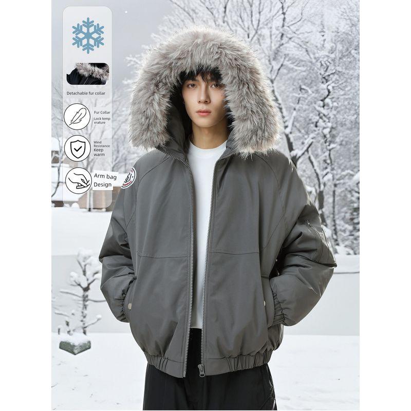 Wassup American Retro Fur Collar Hooded Cotton Parka Jacket for Men and Women, Winter Thickened Minimalist Workwear Cotton Coat