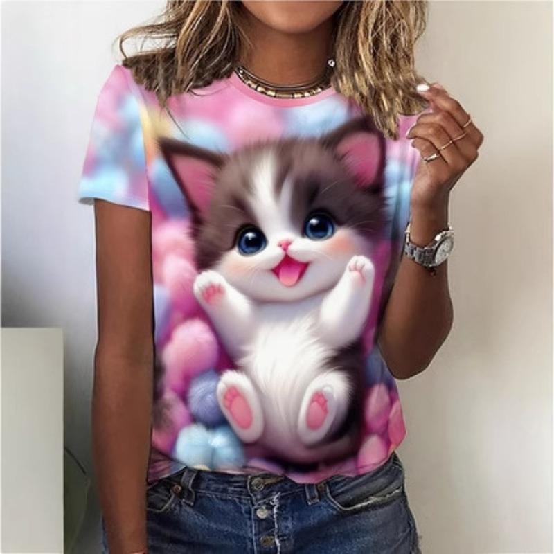 Animal Series 3D Fashion Printed Women's Short Sleeved T-shirt High-definition Three-dimensional Versatile Loose Round Neck Short Sleeved T-shirt