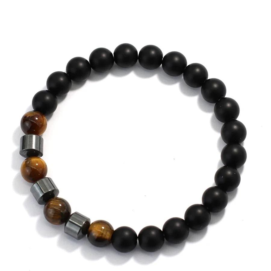 Unique Natural Colourful Stone Bracelet Men 8mm Howlite Tiger Eyes Hematite Beads Energy Bangles Meditation Leisure Homme Joias