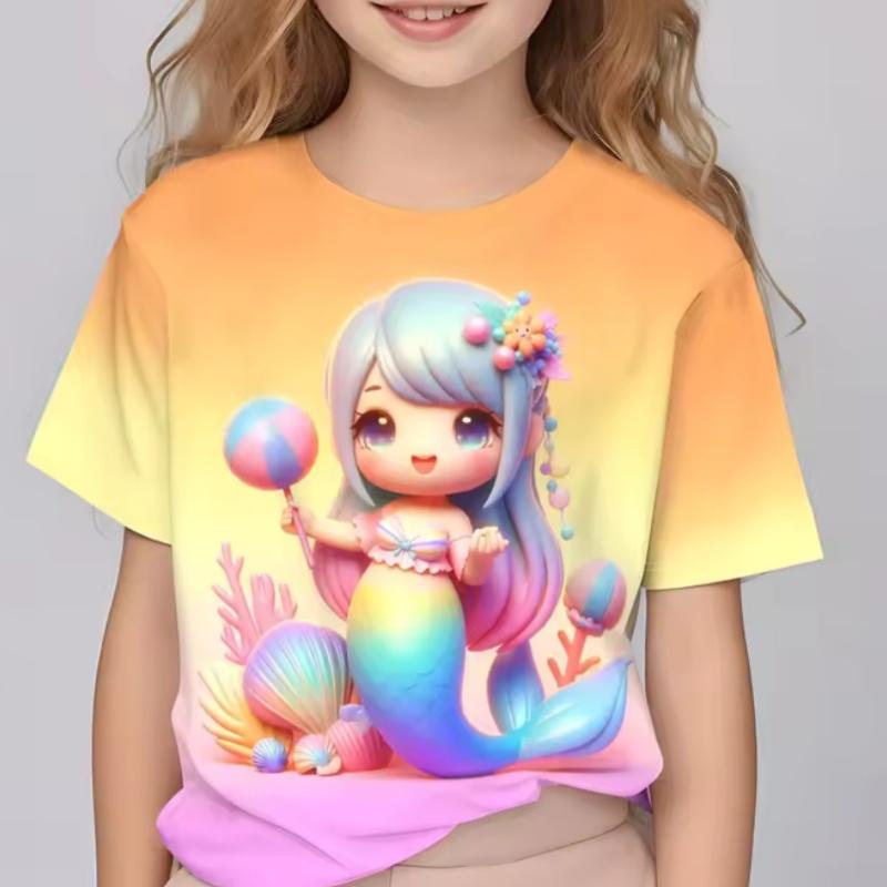 Children Summer Girls T-shirt Cute Cartoon Printed Short Sleeved Round Neck Fashion Comfortable Soft T-shirt