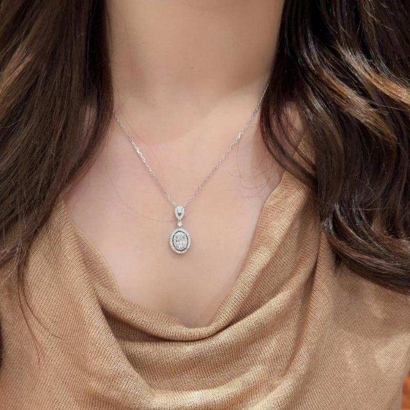 Luxurious And Exquisite Sparkling Oval Gemstone Necklace Inlay Diamonds Fashion Collar Chain Pendant Wedding Jewelry