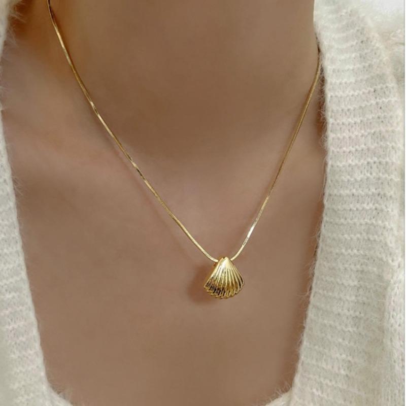Trendy Fashion Light Luxury Glossy Shell Necklace For Women Simple New In Chic Collar Chain Banquet Jewelry Gifts