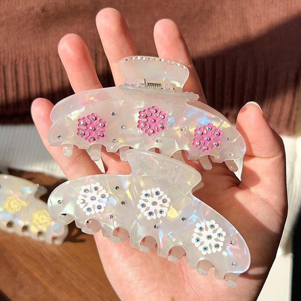 Elegant Snowflake Shark Clip Contrast Color Acrylic Hair Claw Iridescent Hair Claw Girls