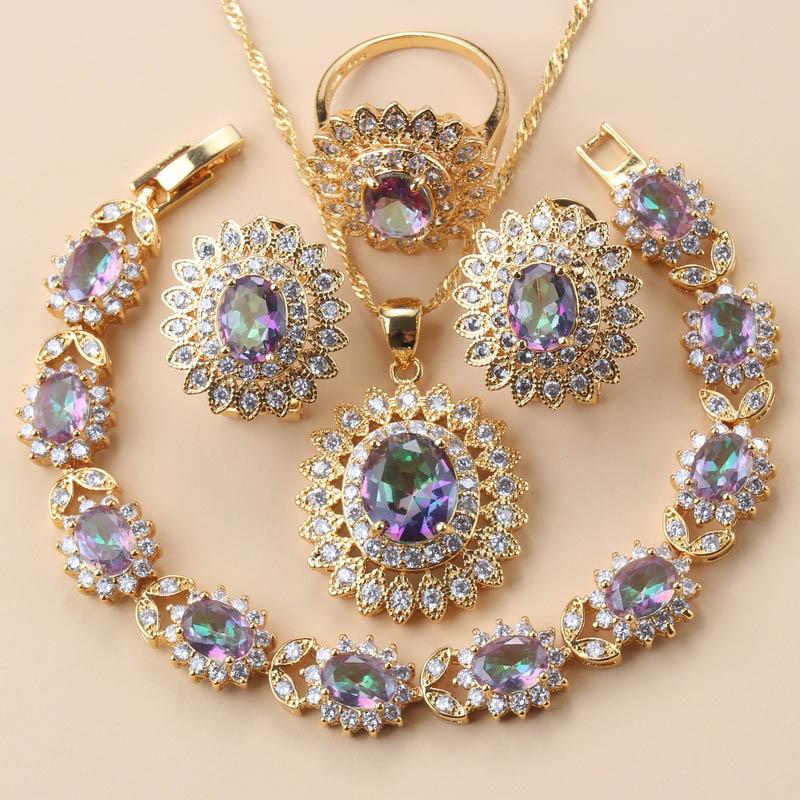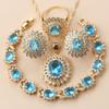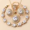 African Wedding Necklace Big Sunflowe Jewelry Sets Gold Plated Luxury Woman Earrings Charm Bracelet And Ring Bridal Costume