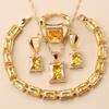 African Gold Plated Bracelet Bangle Ring Trendy Green Zircon Jewelry Sets Necklace Clip Earrings For Women Gift