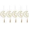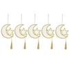 5Pcs Hollow Wooden Hanging Signs Creative Eid Moon Ornament Eid Door Sign Middle East Moon Festival