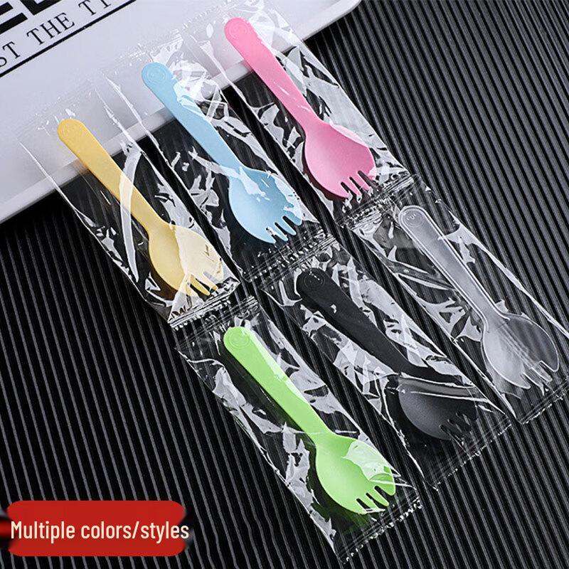 Individually Wrapped Disposable Plastic Fork Spoons, 100-Pack