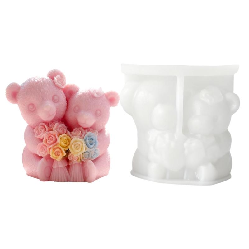 Valentines Themed Bear Couple Silicone Mold For Handmade With Fine Carving Detail