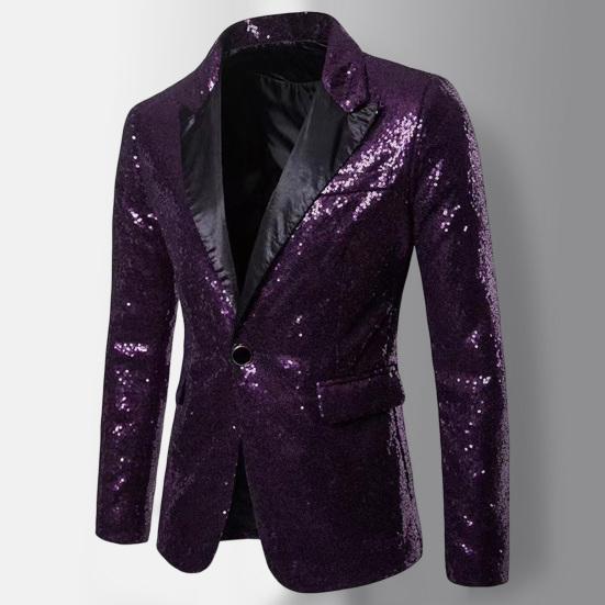 Two pockets on both side can store your mobile phone, cash, card, keys and other small items. Men will be more handsome wearing this shining sequins blazer.