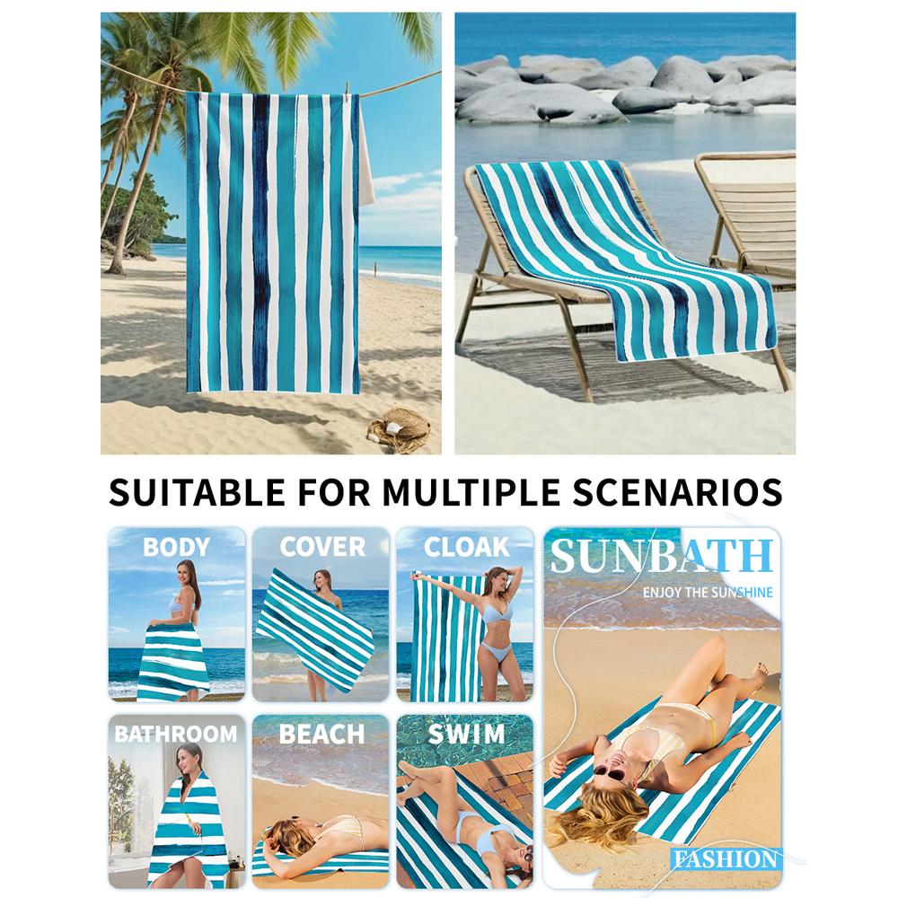 Summer Striped Beach Towel Microfiber Absorbent Soft Bath Shower Towels Quick-drying for Adults Bathroom Spa Swim 80x160cm