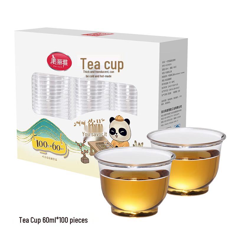 Meiliya 60ml Disposable Crystal Clear Tea Cups, 100-Count