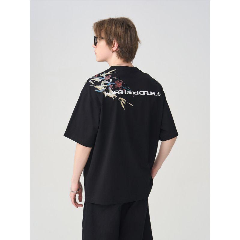 HACR's Harshandcruel New Chinese Style over-the-Shoulder Ink Painting Florals Print Short Sleeve T-shirt