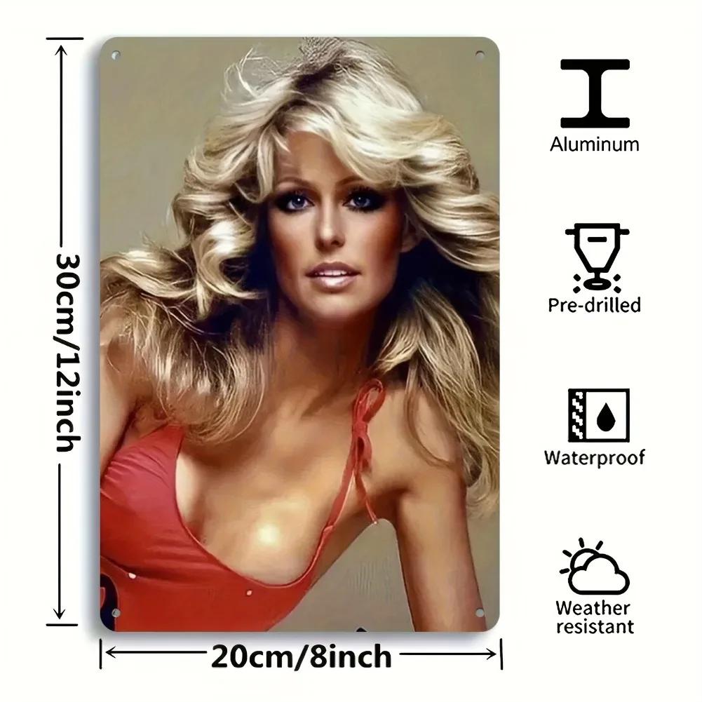 2D Flat, 1pc Farrah Fawcett Vintage Pin-Up Poster - Retro Hollywood Glamour Metal Wall Art Decor - Durable Aluminum Sign