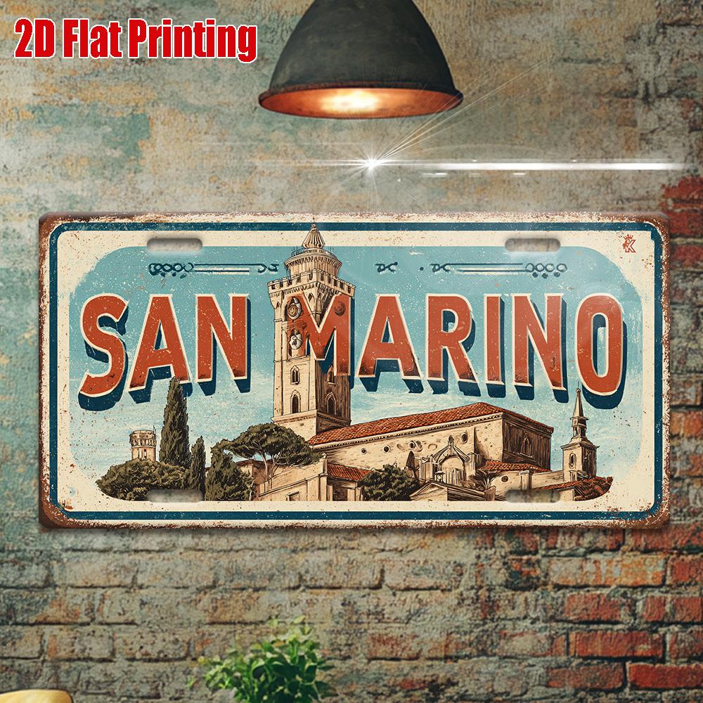 2D Flat, 1 Piece of Retro Metal License Plate, San Marino Cityscape Aluminum Sign, Suitable for Home, Bar, Cafe, Garage Wall Art
