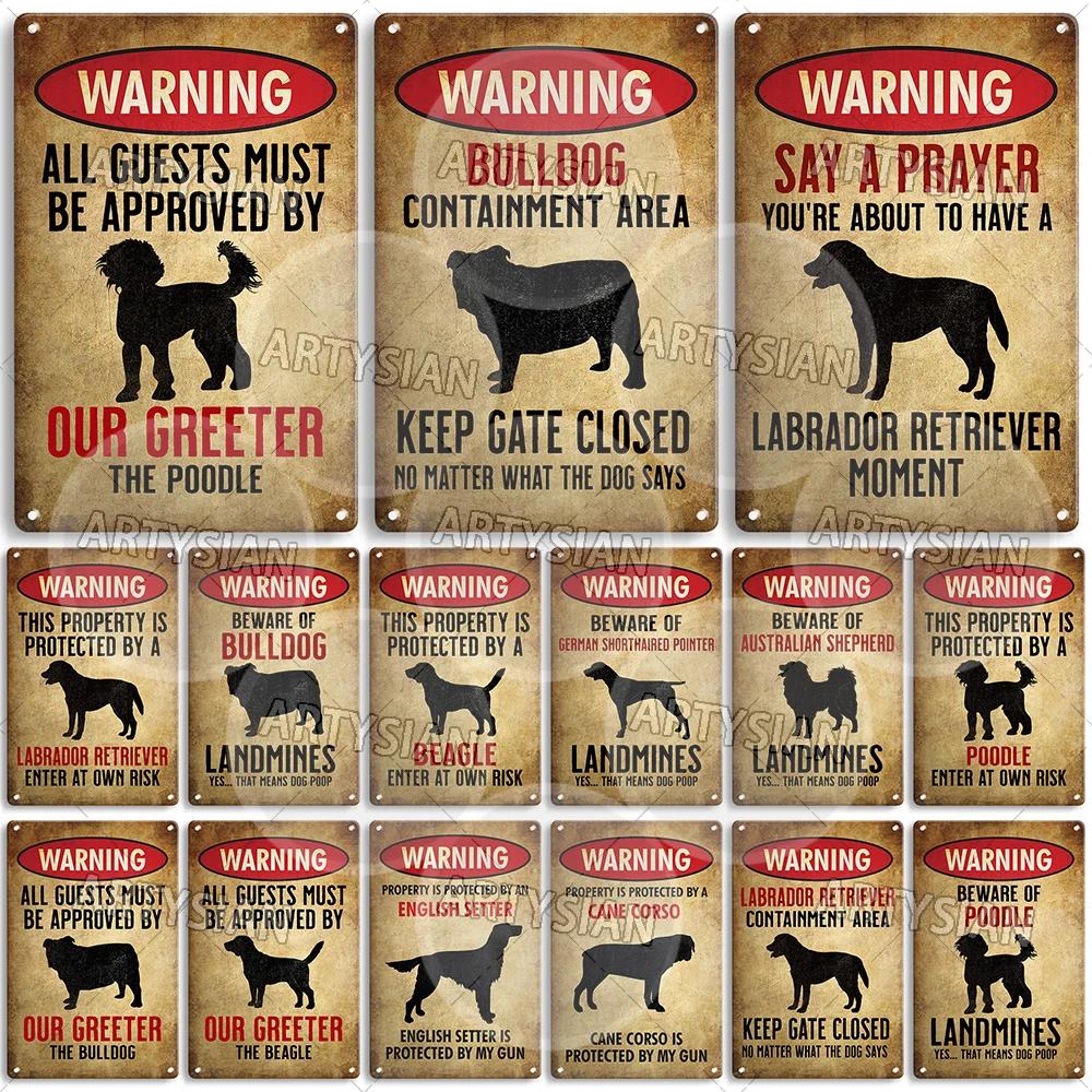 Beware Of Dog Warning Metal Sign Setter Aussie Corso Frenchie Labrador Poodle Bulldog Beagle Shorthaired Pointer GSP Lab Plaque