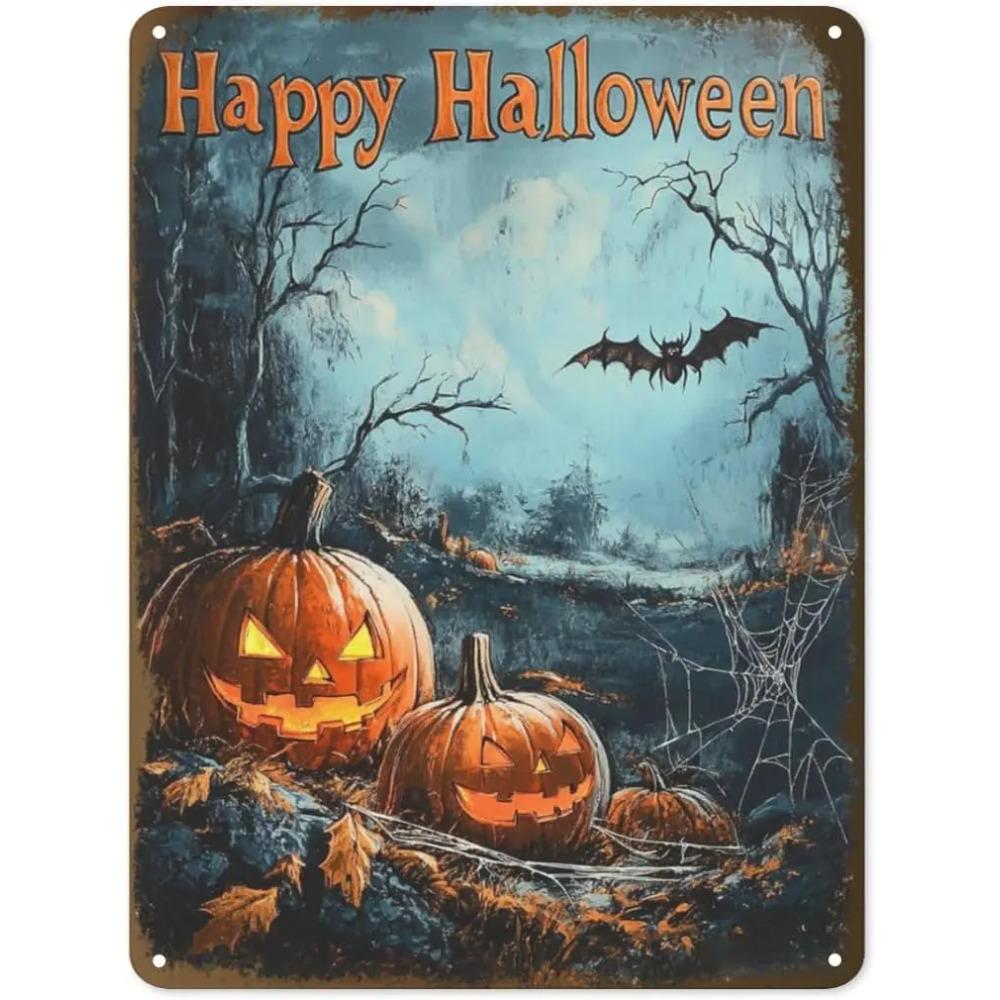 RusticHalloweenDecor Vintage Halloween Tin Sign - Jack-o'-lantern Metal Sign, Indoor/Outdoor Home Porch Garden Decor