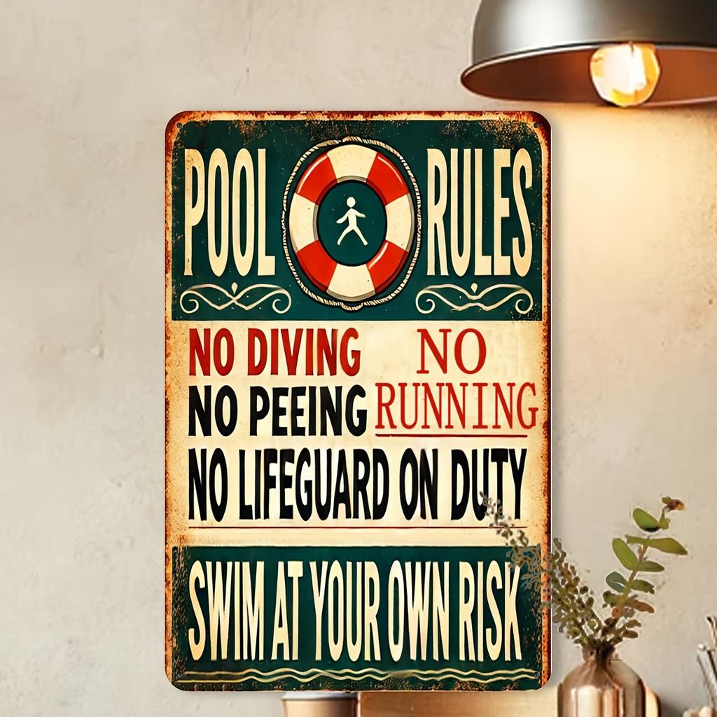 Vintage "Pool Rules" Metal Sign - Rustic Wall Decor with Humorous Guidelines, Perfect for Home, Patio, or Poolside, No Divin