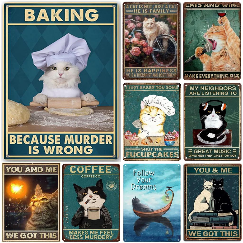 Cat Metal Tin Signs Baking Because Murder Is Wrong Wall Posters Plaque Vintage Iron Painting Decoration for Home Cafe Club Ba