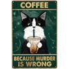 Retro Metal Tin Sign 5.5 X 8 In,More Espresso Less Depresso Poster Drinking Poster Coffee Lover Gift Funny Black Cat Wall Art