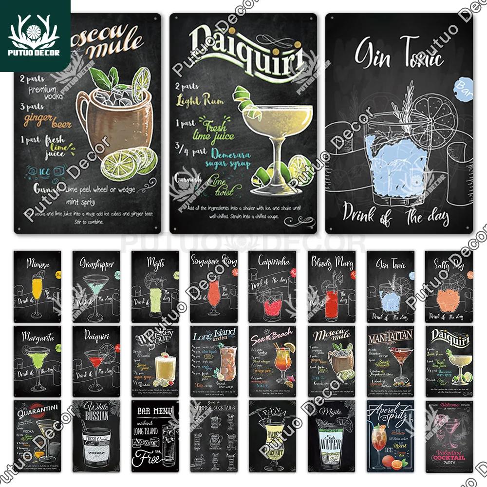 Putuo Decor Vintage Cocktail Metal Sign Tin Plaque for Wall Decor Perfect for Bar Pub Man Cave or Living Room Decoration Retro