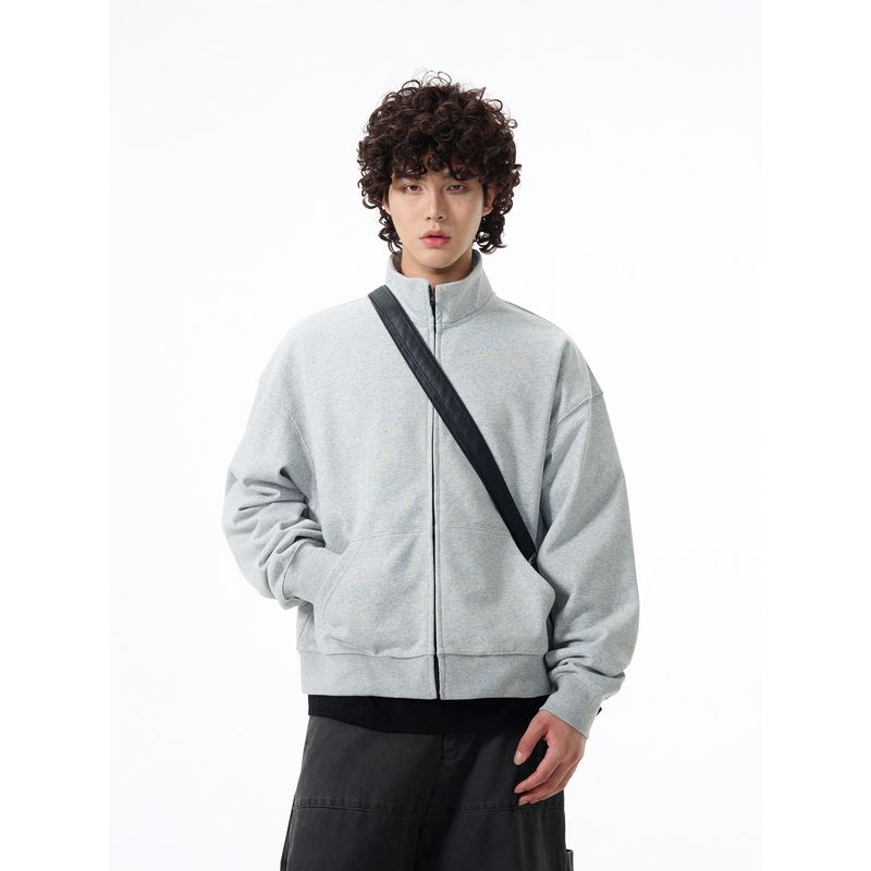 Kisko American Retro Gray Boxy Stand-Up Collar Zipper Sweatshirt Unisex Trendy Loose Casual Short Jacket Ins