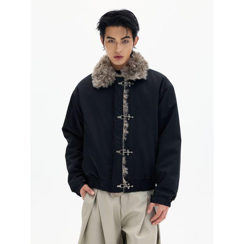 Kisko Winter American-Style Snap-Button Padded Coat with Fur Collar, Unisex Design, Loose Fit, Warm Jacket, Couple's Trendy Style