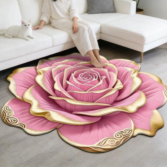 Elegant 3D Floral Design: Showcases a unique three-dimensional flower shape with layered petals that add depth and visual interest. This artistic design transforms the mat into a decorative accent piece, elevating bedroom aesthetics while maintaining practical functionality as a floor covering.