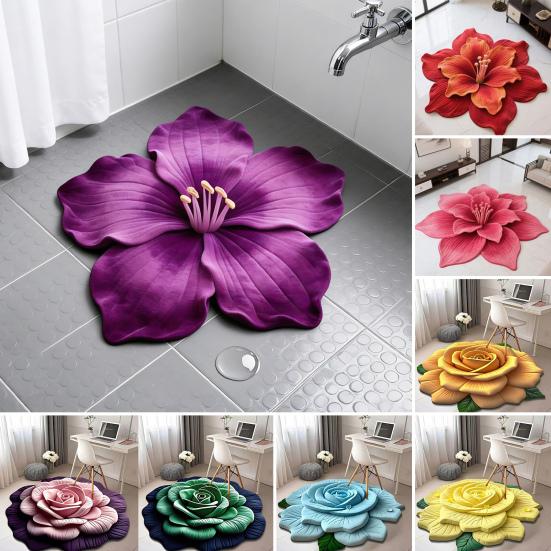 Floral Plush Rug Mat 3D Flower Optical Illusion Floor Mat Non-Slip Water-Absorbent Bath Mat for Bathroom Bedroom Living Room