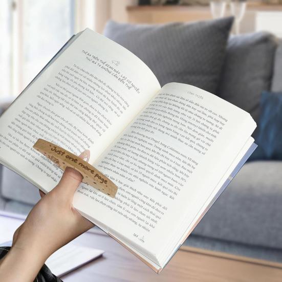 Introducing our thumb page holder, crafted from natural wood for a premium feel. This ergonomic design allows for easy one-handed reading, keeping your book open effortlessly. The unique crescent shape with a central hole ensures comfortable finger insertion, reducing hand strain during long reading sessions.