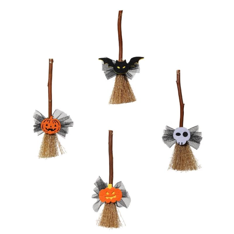 Small Witch Broom with Ghosty/Pumpkin/Bat Halloween Witches Broomstick Hanging Ornaments Halloween Decorations Gift