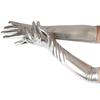 Our women elegant metallic gloves are approximately flat length are 45cm. They are elastic and one size fits most people.