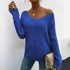Sweater Lace Splicing New Sexy Backless Hollow V-neck Pullover Long-sleeved for Women