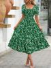 Floral Square Collar Ruched Waist Bubble Sleeve Layered Dress Sweet Style Dress