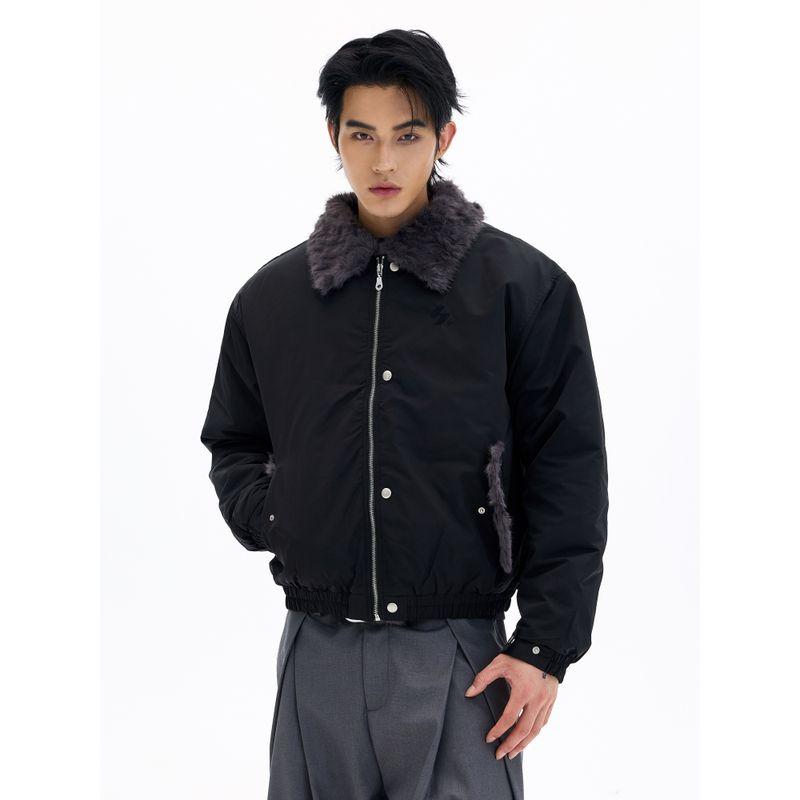 Kisko American-Style Winter Bomber Jacket with Fur Collar, Warm Cotton Coat for Men and Women, High-End Loose Short Cotton Jacket, Trendy