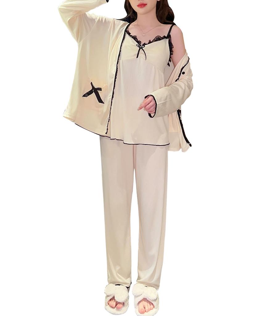 Practical 3-Piece Combination: The camisole features removable chest pads for a customizable fit. The included cardigan provides extra warmth in cold weather. These pajamas are both fashionable and practical, making them perfect for relaxation, travel, or as a gift.