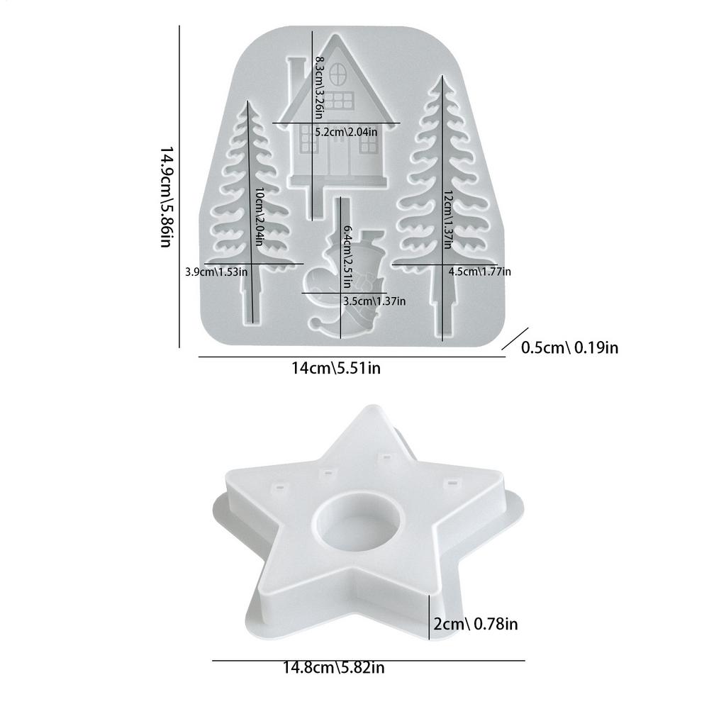 3d Santa Claus House Scene Christmas Candlestick Resin Molds Candlestick Christmas Tree Silicone Mold DIY Candle Holder