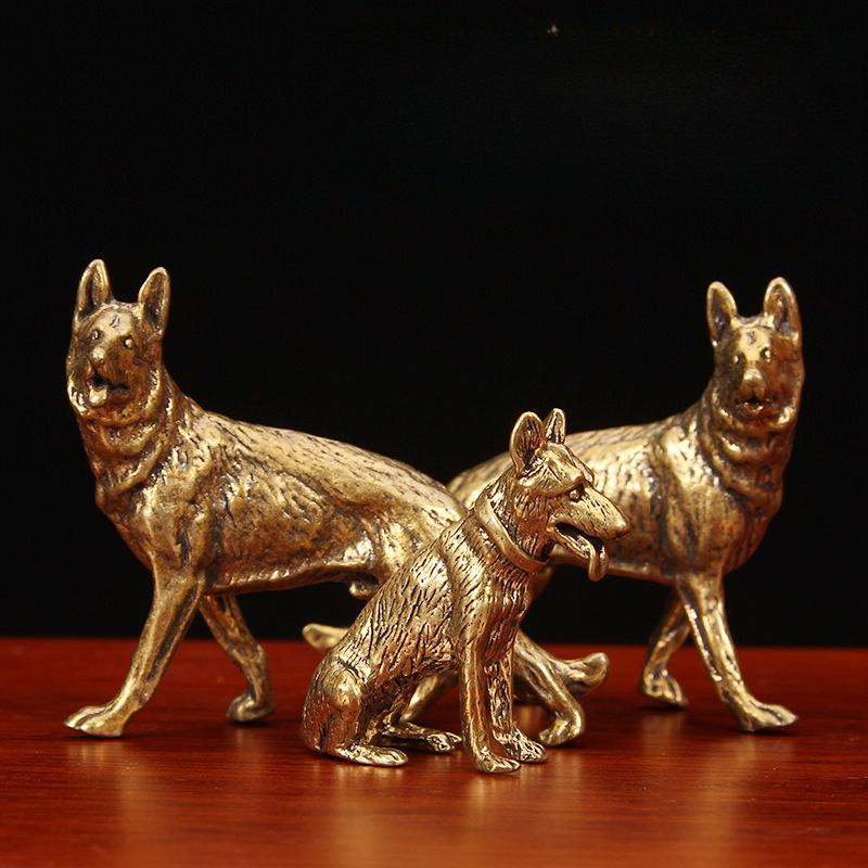 Mini Brass Puppy Statue Cute Dog Metal Sculpture Wolfdog Poodle Hound Pet Figurine Home Decoration Desktop Cabinet Ornaments