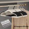10 Velvet Hangers & 20 Clips Combo,30-Pcs Total - Anti Slip Heavy Duty Slim Hangers for Blouses,Pants & Scarves, Multiple Colors
