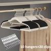 30pack (10 Velvet Hangers and 20 Clips), Heavy-duty Anti Slip Hanger for Wardrobe Organization,Various Color of Household Hanger