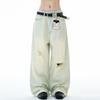Madwitch American Street Style Post-Apocalyptic Ripped Jeans for Men and Women, Loose Casual Wide-Leg Straight-Leg Distressed Pants