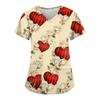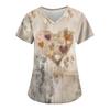 Women's Fashion Printed Short Sleeve V Neck Pattern Tops Pocket Working T-shirts