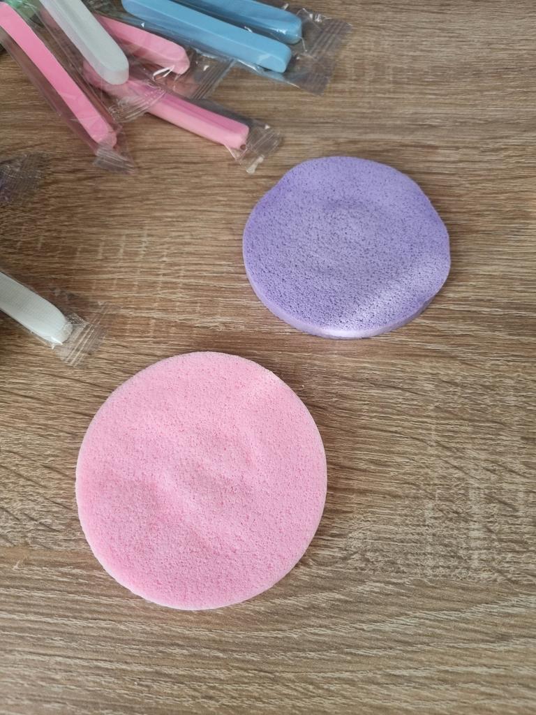 ❤️👍Facial cleansing sponges The set contains 20 cleansing sponges. In their dry state, they come as thin sticks, but after being immersed in water, they quickly expand and turn into round discs, feeling like a soft sponge. They come in various colors.. Very comfortable to use: they swell evenly, fit nicely in the hand, lather up the cleanser well, and gently cleanse the skin. Thanks to their porous structure, they help to carefully remove masks and gels without traumatizing the face. Suitable for daily care and especially convenient for travel due to their compact form in the dry state.