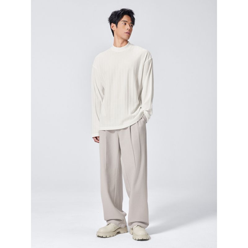 Bodydream Textured Long-Sleeved T-Shirt for Men In Autumn, Loose Casual Velvet-Like Base Shirt, Retro Pure Color Top