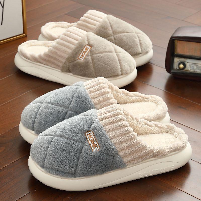 Men's Cotton Slippers Men's Winter Home Warmth New Home Thick-soled Non-slip Wear-resistant Velvet Cotton Shoes